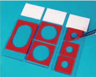 l 無需特殊載玻片,無需任何粘合劑,柔軟的硅膠圍欄使用簡單,貼吸性能強,形成疏水性的環(huán)繞樣本的試劑圍欄(試劑壩)
