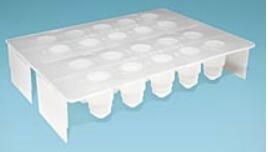 聚乙烯材料,薄的透視的尖端便于樣本包埋時(shí)快速的定向;樣本包埋塊可以用拇指輕輕向上頂出;20個(gè)管子各自獨(dú)立,允許空氣自由流動(不會局部聚集溫度),聚合條件統(tǒng)一;模具設(shè)計(jì)嚴(yán)密,適合厭氧包埋樹脂的使用,一個(gè)支架疊放在另一個(gè)有包埋樹脂的支架上方就可以隔絕空氣;模具也可以用來存儲樹脂切片。