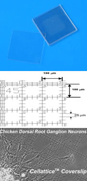 Cellattice™塑料培養(yǎng)片,其上往往刻有字母等做記號(hào)(micro-ruled coverslips),塑料材質(zhì),具有適宜細(xì)胞培養(yǎng)的表面。此類產(chǎn)品主要滿足以下實(shí)驗(yàn)?zāi)康模?/span>
