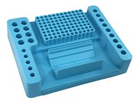 PCR實(shí)驗(yàn)時(shí)不需要碎冰,直接用預(yù)先過夜冷凍的金屬臺(tái)子,可以對(duì)PCR實(shí)驗(yàn)的試劑、樣品低溫保護(hù),一般2-4°C可以保溫5個(gè)小時(shí)。可以放置9個(gè)1.5ml管、8個(gè)2ml管、5個(gè)0.5ml 管、一個(gè)96孔PCR板、一個(gè)50ml試劑槽。