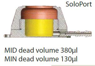 五、LoVol:鈦合金材料,非常低的死區(qū)容積,適用特別珍貴的藥品和收集小量體液,例如CSF INFUSION使用。LoVol port有兩種尺寸:MIN-LoVol(15μl)和MID-LoVol(40μl)配套使用22G 和24G針和輸液套件。通過下圖的比對(duì),可以很快明白LoVol設(shè)計(jì)的奧妙!