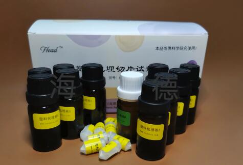 這是一款丙烯酸類塑料包埋切片試劑盒,媲美于傳統(tǒng)的塑料包埋切片865試劑盒。本試劑盒含有動物組織樣品塑料包埋所需的整套試劑,使用本試劑盒可以方便快速地完成組織固定,組織包埋,組織染色等操作。本試劑盒適合包埋各種動物組織:腦、肺、皮膚、肌肉、胃、腸、胰、肝、心、脾、骨髓、骨骼、神經(jīng)、膽等組織標本。由于本試劑盒采用低溫、常溫反應,故采用本試劑盒包埋的樣本,其組織中細胞完整,不會被破壞,因此可廣泛用于病理檢驗、動物檢驗時的標本制備。使用本試劑盒制成的切片,無需脫鈣,可直接染色,適合于常規(guī)染色、組織化學染色及部分免疫組織化學染色。