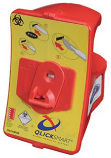 QLICKSMART手術(shù)刀片安全移除器是世界首創(chuàng)的單手移除手術(shù)刀片的工具,可以防止用手拿鑷子或者徒手取出刀片時所造成的意外傷害以及血源感染的風險。只需要將手術(shù)刀瓶送平推入移除器插入口,直到聽到“咔嗒” 一聲,刀片即自動完成移除,這個移除器可以容納100片。